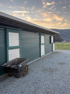 Our care includes 2 to 3 feedings per day of premium grass and alfalfa hay. We offer a medium-sized arena, round pen, and wash racks for grooming and bathing. Our large turnout areas are available for your horse to graze and stretch their legs, weather permitting.