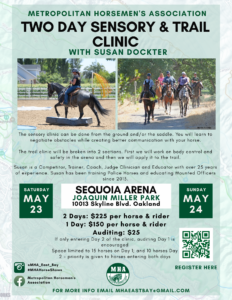 The sensory clinic can be done from the ground and/or the saddle. You will learn to negotiate obstacles while creating better communication with your horse. The trail clinic will be broken into 2 sections.