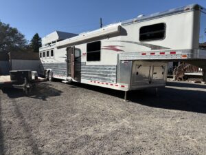 Full-sized motorized awning on right. POD and hay rack on roof.