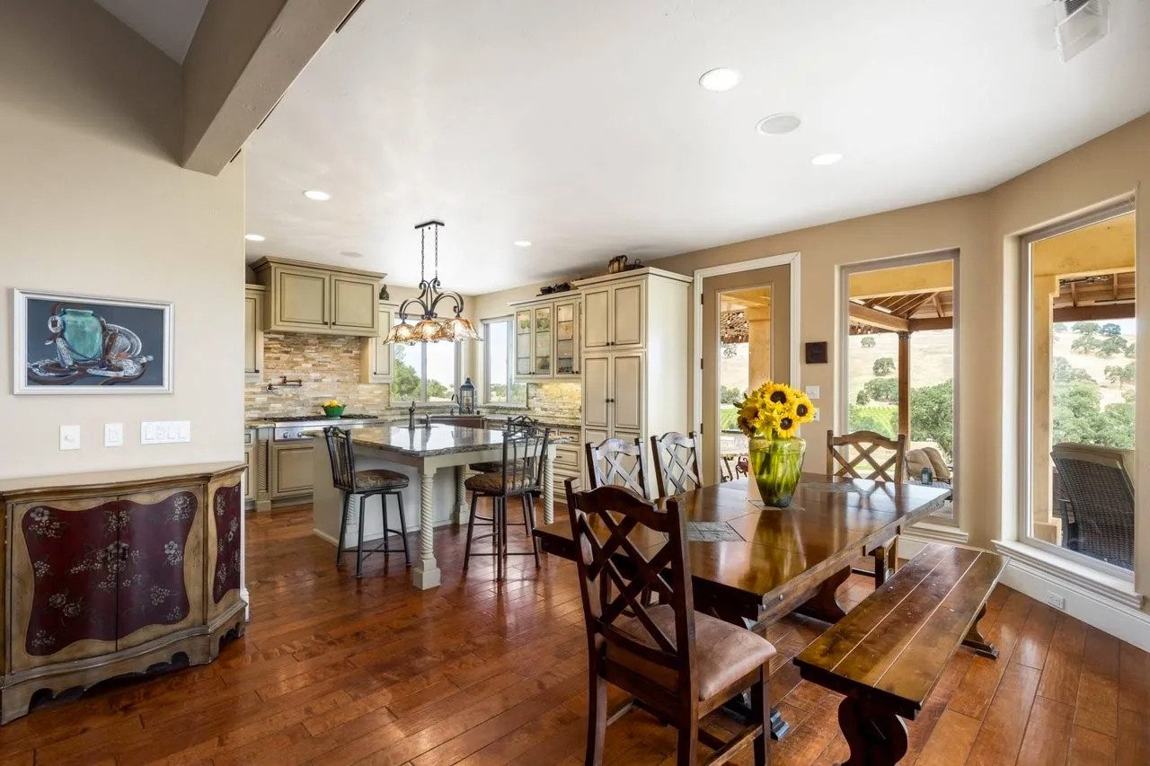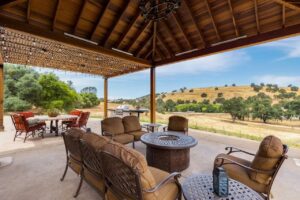 This extraordinary estate blends luxury, functionality, and breathtaking views on 62+ acres. Enjoy a premier equestrian facility, a thriving vineyard, and a stunning 2,600+ sq. ft. home designed for elegance and comfort. Inside, an open great room, chef's kitchen, and formal dining area maximize space and natural light, while a charming pergola outside sets the stage for unforgettable evenings. The primary suite features incredible views, a spacious walk-in closet, and easy laundry access. A private office with a separate entrance adds convenience. Equestrian enthusiasts will love the exceptional barn with 5 European black steel stalls, a tack room, feed room, wash rack, laundry, and a studio unit with a full kitchen and bath. Ride across scenic acreage or train in the sand arena. Fenced pastures with shelters provide added comfort. The vineyard, planted with Primitivo and Syrah grapes, is leased for income. Solar panels cut energy costs, and a dedicated dog wash station ensures even pets enjoy luxury living. This one-of-a-kind estate offers unparalleled beauty, top-tier equestrian facilities, and a thriving vineyard don't miss this rare opportunity!