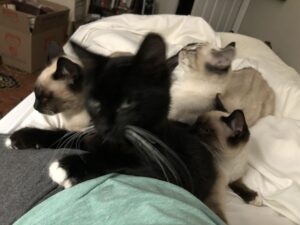 We have 4 absolutely beautiful 6 month old kittens who were born under our deck in Yountville. We have spay/neutered them and hope to find them a really great home or homes. They are litter box trained and socialized. They would make a wonderful quartet of barn mousers or duets of playful siblings.